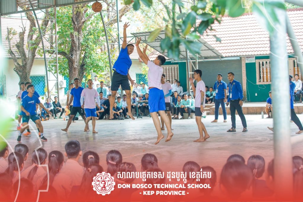 ខេត្តកែប ប្រទេសកម្ពុជា – នៅថ្ងៃទី ៨ ខែមករា ឆ្នាំ២០២៦ សាលាបច្ចេកទេសដុនបូស្កូ ខេត្តកែប បានរៀបចំព្រឹត្តិការណ៍ប្រកួតកីឡាបាល់បោះបុរស រវាងក្រុមពណ៌ខៀវ និងក្រុមពណ៌ស៊ីជម្ពូ ដើម្បីអបអរសាទរពិធីបុណ្យកីឡាពណ៌ប្រចាំសាលា។